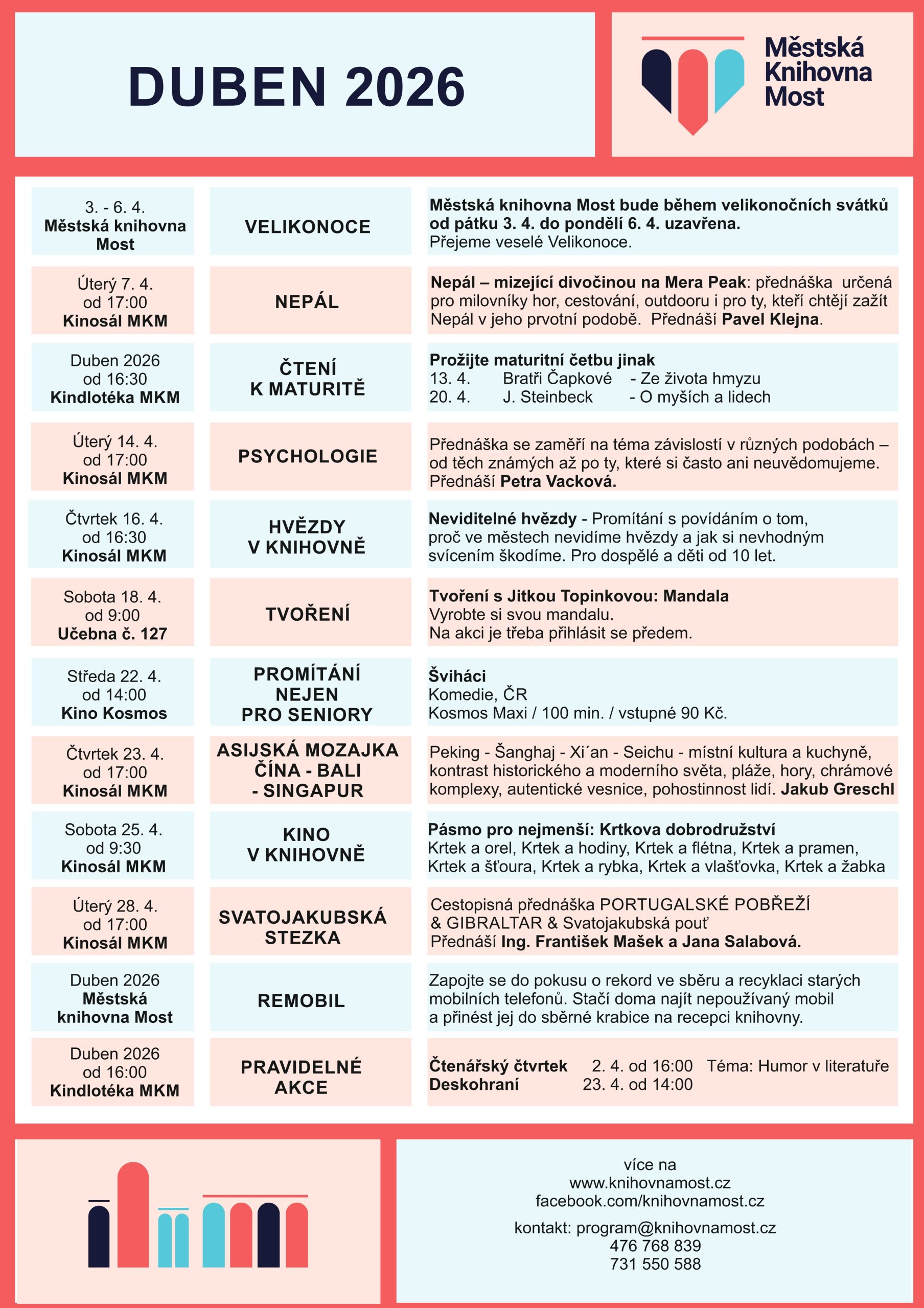 Moskevská 12, 434 01 MostTel.: +420 476 768 839E-mail: program@knihovnamost.czWeb: www.knihovnamost.cz